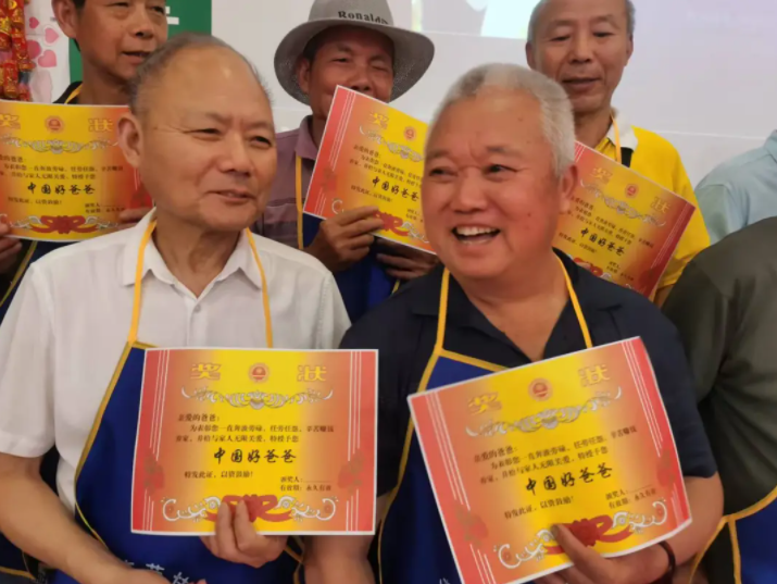 这一刻,平日里习惯了付出、习惯了低调的父亲们,成为了全场瞩目的焦点。他们脸上的表情,从最初的惊讶、羞涩,慢慢转为动容、自豪。陈叔叔接过老伴递上的围裙,看着证书上“中国好爸爸”的字样,笑得合不拢嘴。赵阿姨替在外工作的女儿为老伴戴上帽子,动情地说:“老头子,辛苦一辈子了,以后多为自己想想。” 许多父亲的眼角闪烁着晶莹的泪光。这泪水,是辛劳被看见的欣慰,是付出被珍视的感动。
