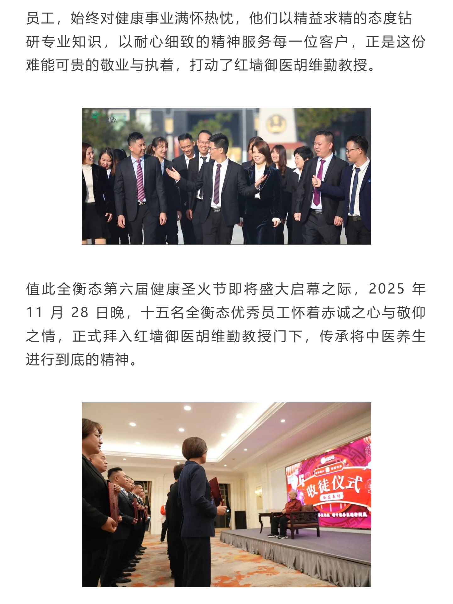 薪火相传守初心,拜师学艺践使命 —— 全衡态十五名优秀员工拜入胡维勤教授门下!